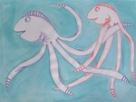 2012Twee lieve inktvisjes in het schone blauw-groene water.